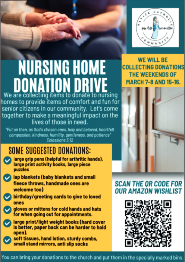 As Catholics, we respect all life and are called to build a culture that cherishes and protects every human life from the moment of conception until the moment of natural death. We strive to offer informative, educational and service-oriented experiences to our parishioners on various pro-life topics.